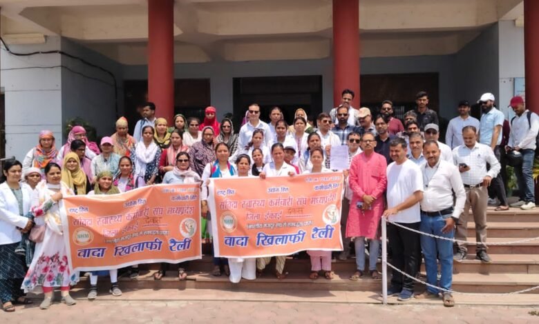 देवास। एनएचएम संविदा स्वास्थ्य कर्मचारी संघ द्वारा जितेन्द्र भदौरिया प्रदेश अध्यक्ष, विजय ठक्कर प्रदेश संयोजक जीतेन्द्र यदुवंशी, प्रदेश महामंत्री एवं भारतीय मजदूर संघ के नेतृत्व में एक दिवसीय सामुहिक अवकाश रखा जाकर मुख्यमंत्री के नाम कलेक्टर कलेक्टर कार्यालय में रैली निकालकर ज्ञापन सौंपा गया। जिलाध्यक्ष राजेश गुर्जर ने बताया कि जिले के समस्त कर्मचारियों द्वारा वादा खिलाफी रैली निकाली और अपनी जायज मांगे रखी। राष्ट्रीय स्वास्थ्य मिशन के अन्तर्गत 20 वर्षों से अधिक समय से कार्यरत लगभग 32 हजार कर्मचारी प्रदेश में स्वास्थ्य सेवाएँ सुचारू रूप से देते आ रहे हैं। कोरोना काल जैसी गंभीर महामारी में भी अपने परिवार एवं जीवन की परवाह किए बगैर सेवाएँ दी हैं। देवास में टीबी मुक्त अभियान को प्रदेश में टॉप लाया गया, इन्हीं सेवा-भाव को दृष्टिगत रखते हुए तत्कालीन माननीय मुख्यमंत्री शिवराज सिंह चौहान ने 04.07.2023 को भोपाल में महापंचायत बुलाकर संविदा कर्मचारियों के लिए अनेक घोषणाएँ की थी। जिसके परिपालन में सामान्य प्रशासन विभाग द्वारा 23.07.2023 को संविदा कर्मचारियों के लिए एक नीति की सौगात दी गई, परन्तु राष्ट्रीय स्वास्थ्य मिशन भोपाल के द्वारा संविदा कर्मचारियों को दी गई सुविधाओं में कटौती की गई है। कर्मचारियों की मांग है कि कर्मचारियों को विभाग में रिक्त पदों पर संविलियन किया जाकर, नियमित किया जावे। पूर्व से दी जा रही सुविधाओं में ई. एल. एवं मेडिकल को पृथक कर दिया है। अनुबंध प्रथा को पूरी तरह से समाप्त नहीं किया गया है। अप्रेजल जैसी कुरीति को यथावत रखा गया है। सेवा निवृत्ति की आयु में 65 वर्ष से घटाकर 62 वर्ष किया गया है। एन.पी.एस., ग्रेच्युटी, स्वास्थ्य बीमा एवं डी.ए. की सुविधा से वंचित रखा गया है। शासन द्वारा समकक्षता (वेतन विसंगति) का निर्धारण गलत तरीके से किया गया है, जिसमें पुन: विचार कर संशोधन किया जावें। निष्कासित सपोर्ट स्टॉफ एवं मलेरिया एमपीडब्ल्यू की एनएचएम में वापसी की जाए। आगामी 5 दिन में मांगे पूरी नहीं होती हैतो 22.04.2025 से प्रदेश के समस्त 32,000 संविदा स्वास्थ्य कर्मचारी अनिश्चितकालीन हड़ताल पर चले जाएंगे। ज्ञापन के दौरान जिला उपाध्यक्ष ज्योति अहिरे, मप्र कंस्ट्रक्शन महासंघ प्रदेश महामंत्री लोकेश विजयवर्गीय, धनंजय गायकवाड, राजू लोधी सहित बडी संख्या में भामसं पदाधिकारी व स्वास्थ्य विभाग के समस्त NHM कर्मचारी उपस्थित थे।